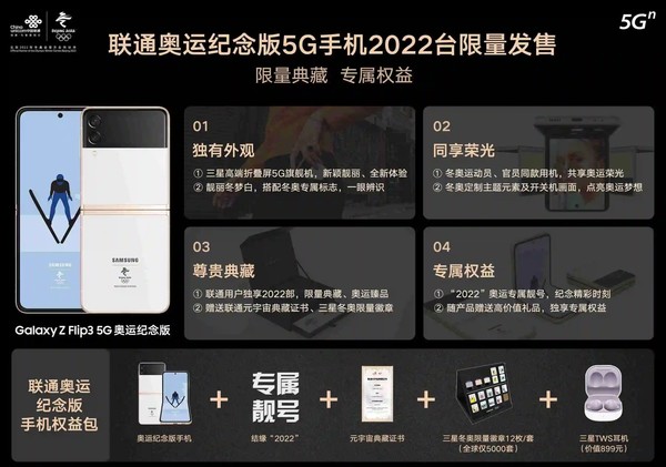 1月15日,三星携手联通召开三星Z Flip3 5G奥运纪念版联合首销发布仪式,在此次首销仪式上,三星Z Flip3 5G奥运纪念版正式与广大用户见面。这部手机是在三星Z Flip3 5G的基础上,加入了独特的奥运元素,创造了全新的视觉观感。