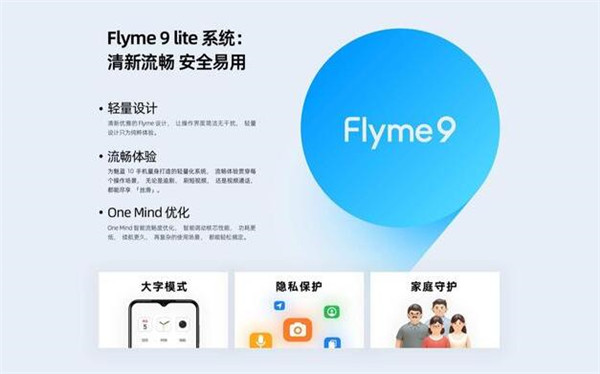 其他方面:该机内置 5000mAh 电池,支持 10W 充电,厚 9.3mm,重 201g,有曜石黑、凝夜黑、星光白、远山绿 4 种配色,保留 3.5mm 耳机孔,蓝牙 4.2,支持红外遥控,最高 256GB 存储卡扩展,运行基于 Android 11 的 Flyme 9 lite 专用系统。