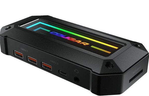 伴随着笔记本越来越轻薄,厂商开始精简端口,因此消费者在不少场景中需要借助扩展坞。Cougar 近日推出了针对玩家的全新 DS10 扩展坞,还提供了 RGB 照明。该设备具有坚固的运动型设计,顶部有一个发光的镜面元件。