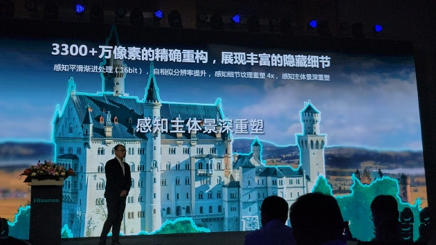 海信全自研8K AI画质芯片,除了支持最高8K分辨率画质之外,增加了AI画质处理功能。该芯片支持3300+万像素的精确重构可平滑渐进将画面提升到16bit,展现画面中更多细节;通过AI对象检测,进行高精度运动估计补偿;在色彩控制上,通过支持48bit色深;7897 个颜色点控制,实现了精准的色彩提升,针对人脸进行AI检测可实现肤色提升。在分区控制方面,海信第5代画质芯片做到了支持26880个分区控制,对比度更强画面暗部更有层次,未来还可适配超多分区的MiniLED产品。