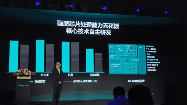 今日发布的国内首颗自主设计的8K AI画质芯片是海信第五代画质芯片。据官方介绍,这颗画质芯片是海信研发芯片以来集成度最高、功能最丰富的一代芯片。与部分自研或采买IP不同,这颗画质芯片的全部技术均来自自主研发。