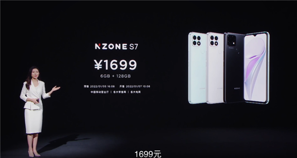 价格上,中国移动NZONE S7售价1699元(6GB+128GB),将于1月5日16:08预售,1月7日10:08正式开售。