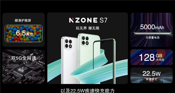 核心配置方面,NZONE S7搭载7nm 8核5G SoC芯片,支持双5G智能切换,刷剧更流畅,游戏不掉线。