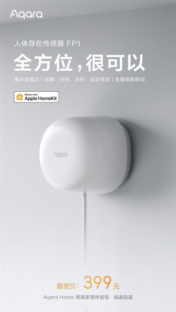 12 月 31 日消息,今天,绿米 Aqara 发布人体存在传感器 FP1,官方表示,这款产品搭载了新生代毫米波雷达传感器,首发价 399 元,现已在 Aqara Home ASPCMS社区官网居体验馆上市。
