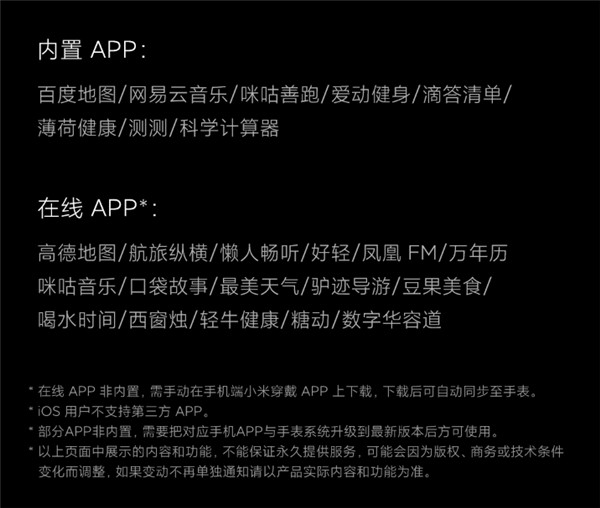 小米穿戴今日宣布,Watch S1 新增支持 11 款第三方 App。海报中可以看出,这些 App 包含网易云音乐、懒人听书、万年历、薄荷健康等。