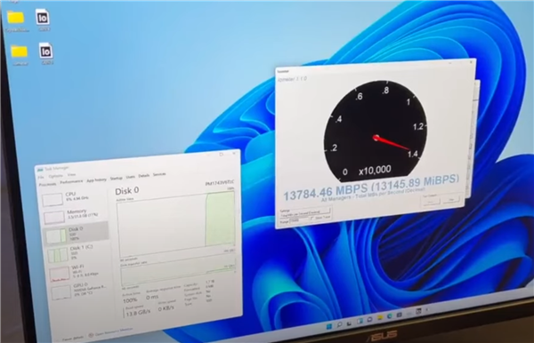 他使用的硬盘是三星前几天才发布的企业级PM1743硬盘,容量1.92TB起,最大15.36TB,PM1743顺序读取可达13000MBs/s、顺序写入6600MB/s,随机读取2500K IOPS、随机写入250K IOPS。