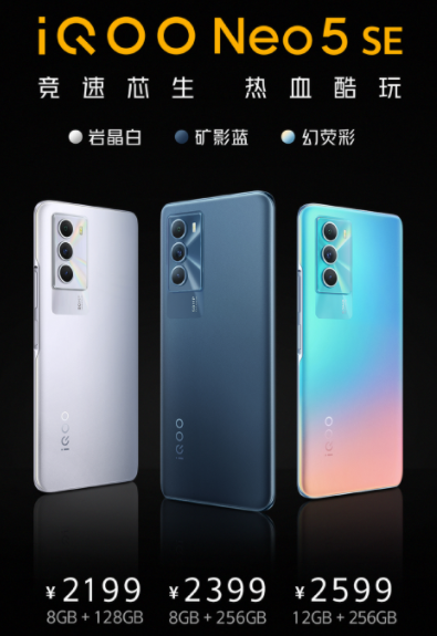 就在昨天iQOO新机Neo5 SE在全网正式开售,目前正在火热售卖中。这款新机被官方形容为“竞速芯生,热血酷玩”,想必游戏体验十分不错。新机一共推出了矿影蓝、岩晶白、幻荧彩三种时尚配色,后置镜头以小曲率倒角和矩阵式云阶设计,率性、干练;后盖复刻自然岩石的质感,幻荧彩用荧光渐现工艺营造变幻,充满个性。