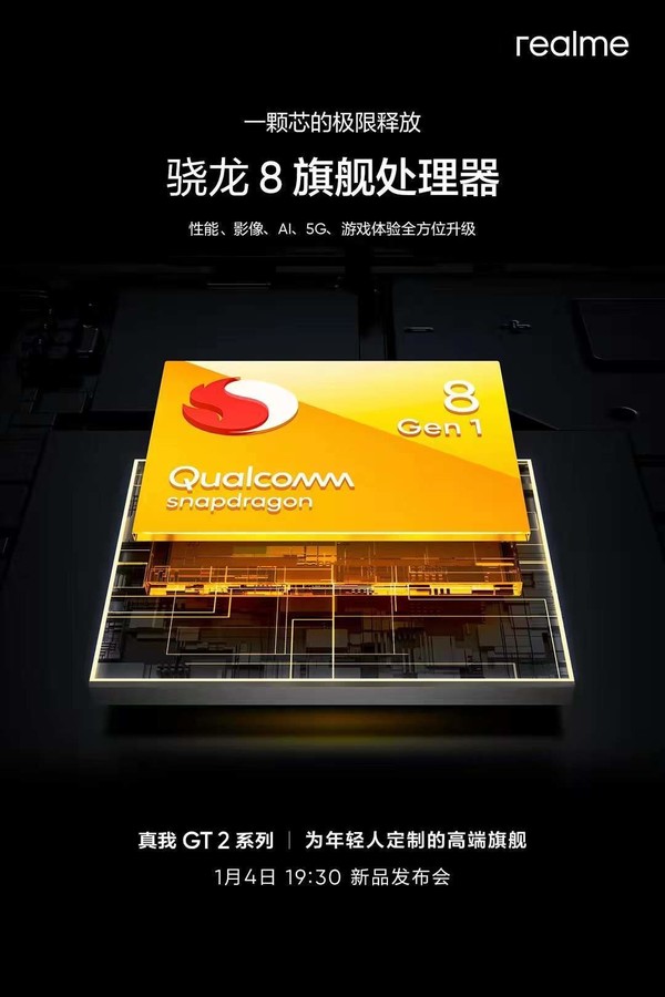 12月29日,realme真我手机官方正式公布了真我GT2系列的最新特性——搭载全新一代骁龙8旗舰处理器,新旗舰,新体验,新突破,带来性能、影像、AI、5G、游戏体验全方位的升级。按照目前的节奏来看,真我GT2系列将成为继moto edge X30、小米12系列之后,第三款搭载全新一代骁龙8旗舰处理器的产品。