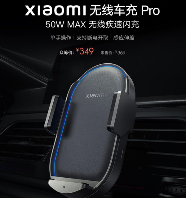 12 月 28 日消息,今日上午,小米无线车充 Pro 在小米商城开启众筹,支持 50W MAX 无线疾速闪充、感应伸缩以及断电开取,零售价 369 元,众筹价 349 元。
