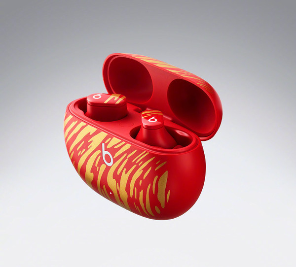 Beats Studio Buds虎年特别版采用全红配色搭配金色虎纹图案设计,寓意着红红火火;配备小、中、大号三种尺寸的rou'ruan硅胶耳塞,提供进一步的佩戴舒适度和理想的隔音效果,营造更强的听觉体验;充电盒设计圆润、纤薄,耳机支持IPX4级抗汗抗水功能。