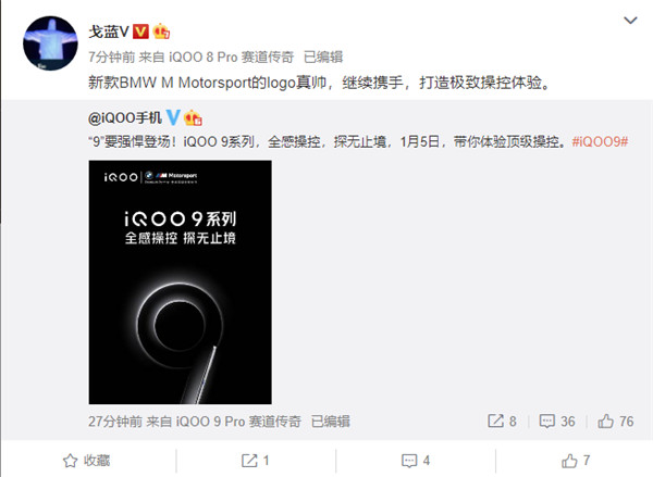 此外,iQOO 产品经理还透露,这款机型将会继续与宝马合作,并提供新的联名版本,带有最新款 BMW M Motorsport 的 logo。