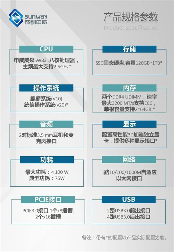 IT之家获悉,申威威焱 831 处理器是采用“申威 64”指令集的新一代国产处理器,单个芯片集成八个运算核心,主频达 2.5GHz,极大提升运算能力。同时,申威威焱 831 处理器提供双路 DDR4 存储控制器,带宽达 3200MT / s。通过测试验证,整机访存带宽、计算性能等指标均达到国内先进水平。