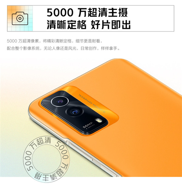 iQOO Z5x 搭载 5000 万像素主摄,配备 2MP 微距镜头,前摄为 800 万像素。手机采用 LPDDR4X 双通道内存,UFS 2.2 存储芯片,支持最高 1TB microSD 扩展卡。