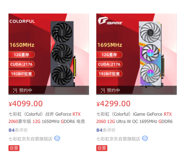 12 月 21 日消息,12 月 7 日,RTX 2060 12G 显卡正式推出。今天,七彩虹上架了两款 RTX 2060 12G 新显卡,型号分别为战斧豪华版和 Ultra W OC,售价分别为 4099 元和 4299 元。