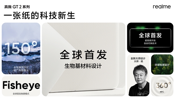 据悉,真我GT2 Pro延续了深泽直人大师设计,创造性的将环保生物基材料与“纸”的天然肌理完美融合,设计出兼具环保、美感和超越传统材料品质的顶级旗舰手机,在真我GT2 Pro上实现可持续发展的未来设计。