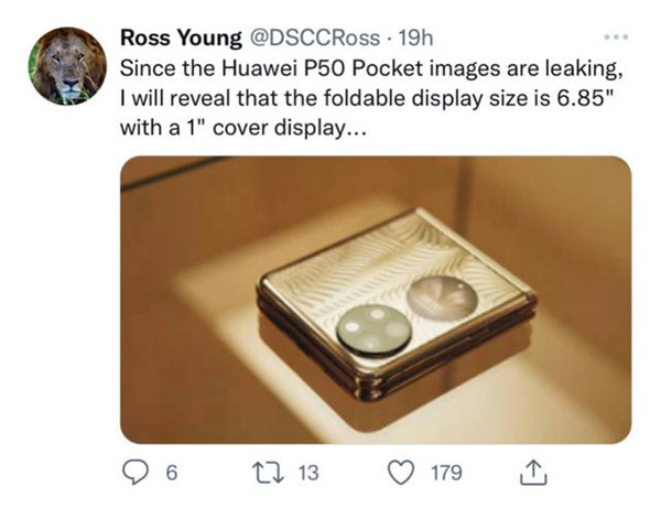 根据此前爆料,华为 P50 宝盒金色版的圆形背部副屏还可以当自拍取景器。P50 Pocket 折叠屏手机屏幕尺寸为 6.85 英寸,背部显示屏为 1 英寸。
