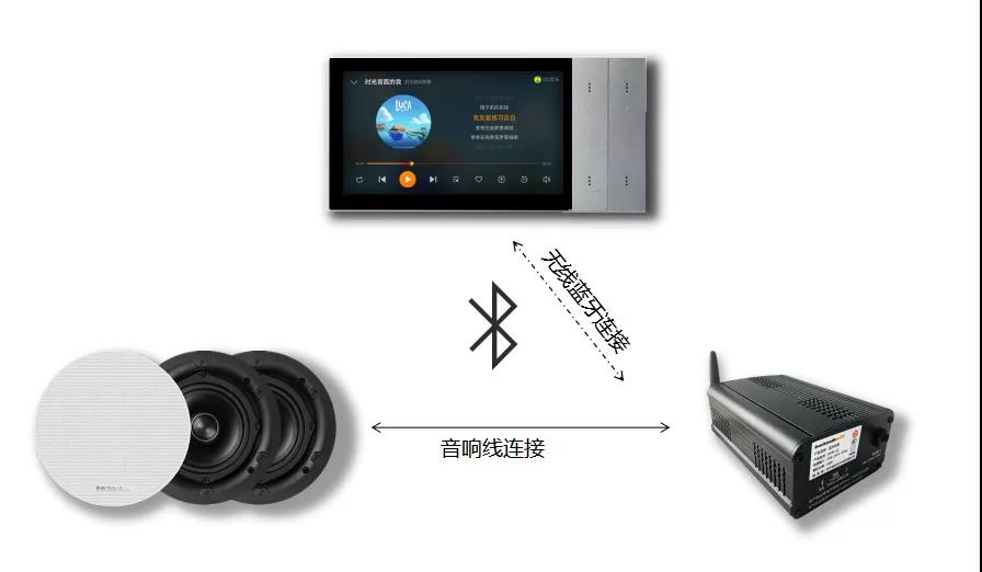 能连接泊声蓝牙背景音乐主机,搭配双声道立体吸顶扬声器,即可组成一套高品质家庭背景音乐系统,自带海量腾讯流媒体音源。