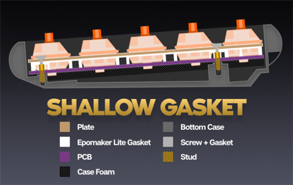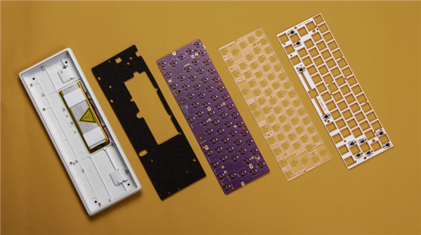 官方表示,传统键盘内部拥有大量空隙,而这款新品的复杂三明治结构,利用硅胶垫将机械轴周围的空隙填满,从而减少噪声。除此之外,PCB 版以及按键整体还采用了悬浮结构,螺丝仅位于四周,因此打字时手感柔软,缓冲良好。
