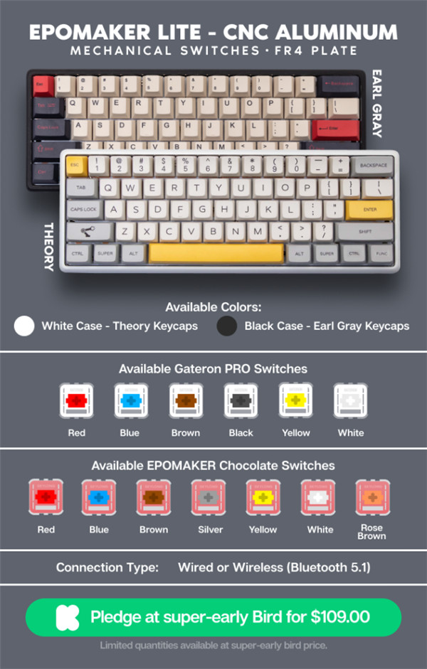 12 月 17 日消息,根据外媒 techpowerup 消息,客制化机械键盘厂商 Epomaker 推出了 61 键配列的全新机械键盘:Epomaker Lite。这款产品采用创新的立体硅胶垫,创新的结构设计有助于减小噪音。产品已经在众筹网站 kickstarter 上线,众筹价格约合 503 元人民币起。