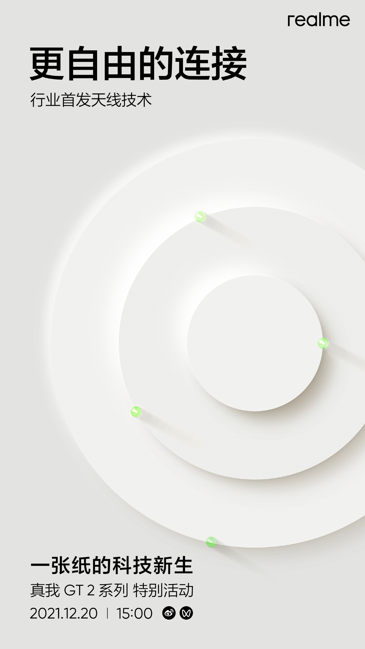12 月 14 日,realme 真我官方宣布将于 12 月 20 日 15:00 在全球同步举办真我 GT2 系列特别活动,活动主题为“一张纸的科技新生”。