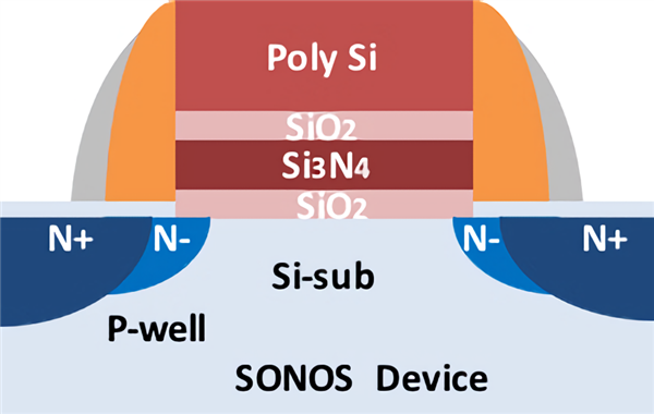 其中,氧化物-氮化物-氧化物(ONO)层使用了二氧化硅(SiO2)、氮化硅(Si3N4)材料,后者制造难度非常低。