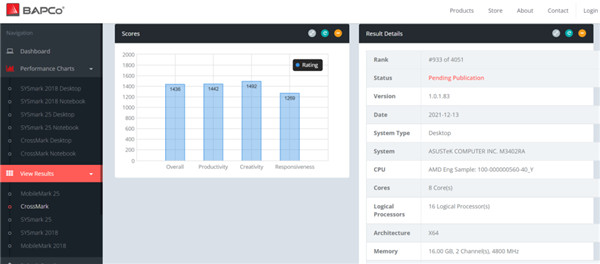 12 月 16 日消息,AMD 预计将于 2022 年推出锐龙 Ryzen 6000 系列 CPU,有望首次支持 DDR5 内存。根据外媒 notebookcheck 报道,一款型号未知的神秘处理器出现在了 BAPCo CrossMark 跑分网站。