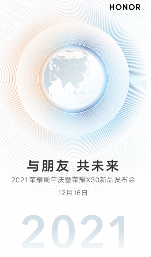 12月16日15:30,“与朋友 共未来”荣耀周年庆活动暨荣耀X30新品发布会将正式召开,作为荣耀X系列“八年诚意之作”,荣耀X30将用高品质和用户交朋友,从外观设计到功能配置都带来标杆级体验。