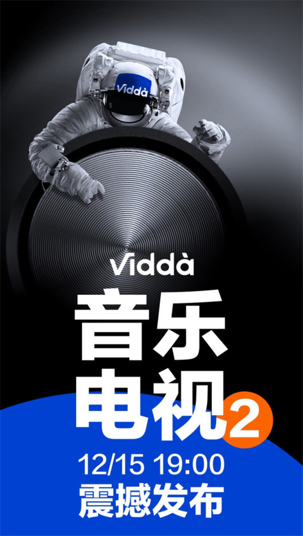 12 月 15 日消息,海信旗下的智能电视品牌 Vidda 将于今晚 19:00 举办发布会,正式发布 Vidda V5G 音乐电视。该品牌此前推出过型号为 65V3F-PRO 的第一代音乐电视,产品底部配备 6 颗 18W 扬声器,拥有 2.0L 大腔体。