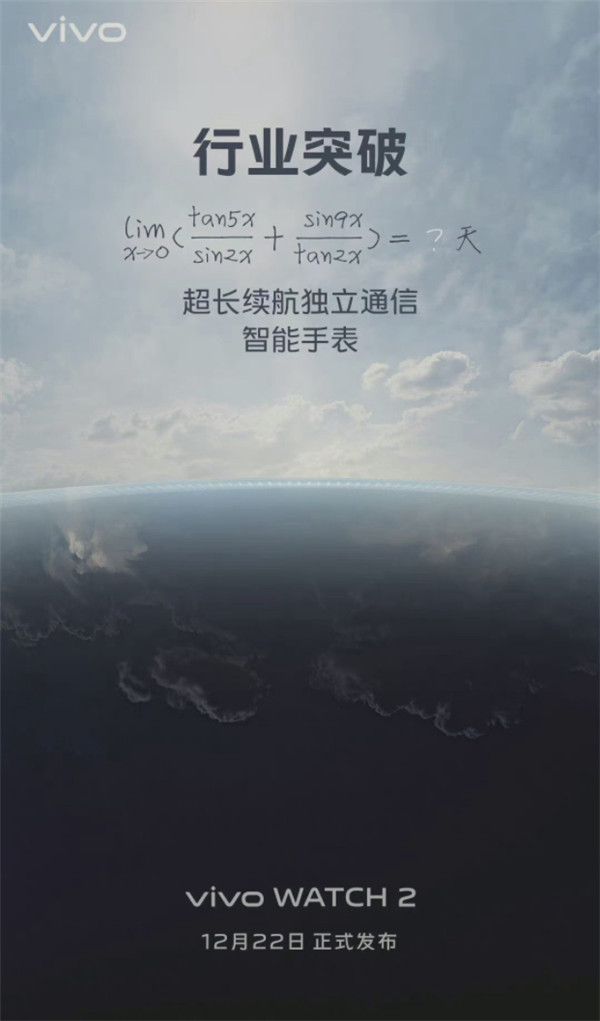 vivo 号称该手表续航为“行业突破”,还卖了个关子,写了个数学题,计算答案为 7,也就是 7 天超长续航独立通信。