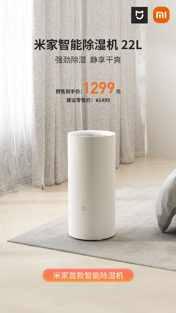 米家智能除湿机22L已于日前在小米商城上架。12月14日,小米官方宣布,米家智能除湿机22L正式开启预售,建议零售价1499元,预售到手价1299元。根据介绍,该除湿机日除湿量可达22L,采用五重降噪设计,噪音低至35.5分贝,并有三种工作模式,可满足多种需求。