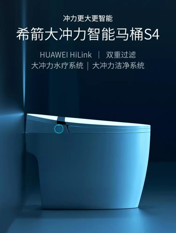 希箭大冲力智能马桶可通过WiFi连接HUAWEI HiLink,实现物联功能,无需遥控器,臀洗、烘干、选择用户和水温等,手机也能指挥马桶;采用飓风双重冲刷系统,裙边冲水孔位置可调节,所有洗刷面全部覆盖,拒绝陶瓷面挂污,底部直冲孔配合S弯全施釉管道,强劲虹吸助力,污物一次冲净;集成一体式嵌入新AI算法,恒温,避免过热过烫,恒压,告别出水忽大忽小;个性化设计外置过滤器及内置过滤网双重过滤水中杂物,保证用水健康。
