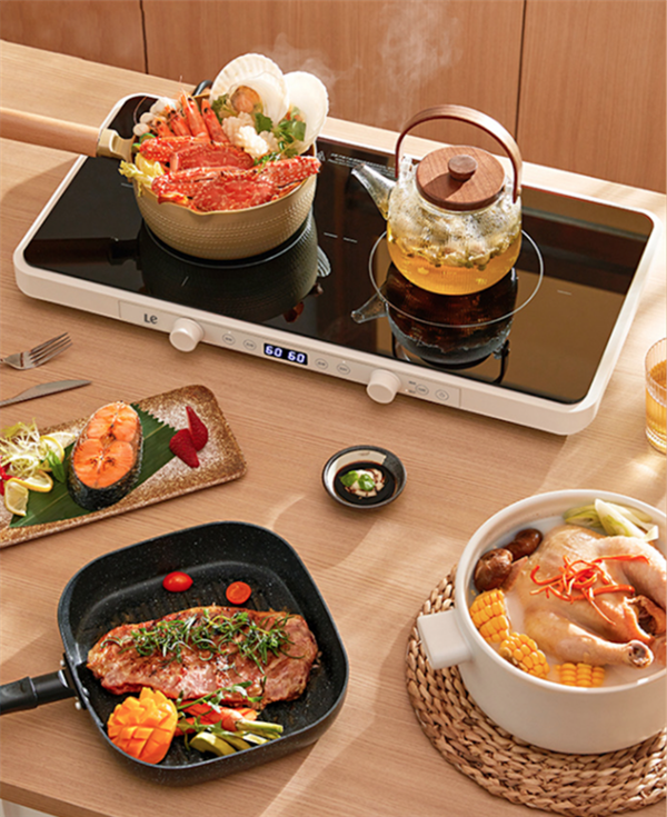 乐视嗨烤盘具有两种烹饪模式,即烧烤或双灶模式。在传统的烧烤模式下,可以形成左右两个独立分区,精准控温,而自带的超大烤盘,可以容纳更多的食物和料理。