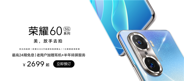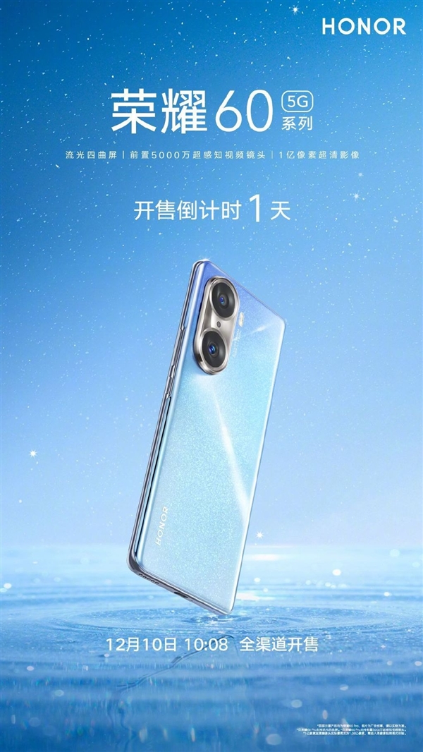 根据官方消息,荣耀60系列将在明日(12月10日)早10:08正式开售,其中荣耀60起售价为2699元,荣耀60 Pro起售价为3699元。