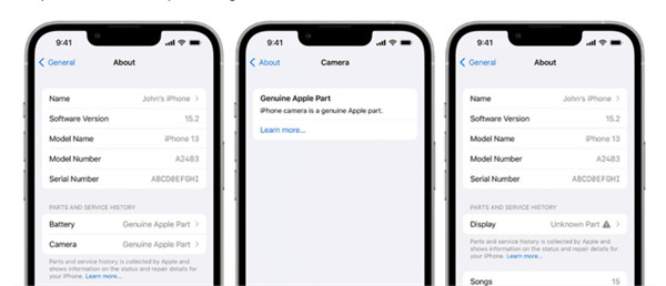 如果零部件安装不正确,或者该部件为非正品部件,或该部件已经被使用或安装在另一部 iPhone 上,或者该部件没有达到预期功能,则会显示“未知部件”信息。在之前的 iOS 版本中,用户只能看到更换的部件是否被识别为未知部件。