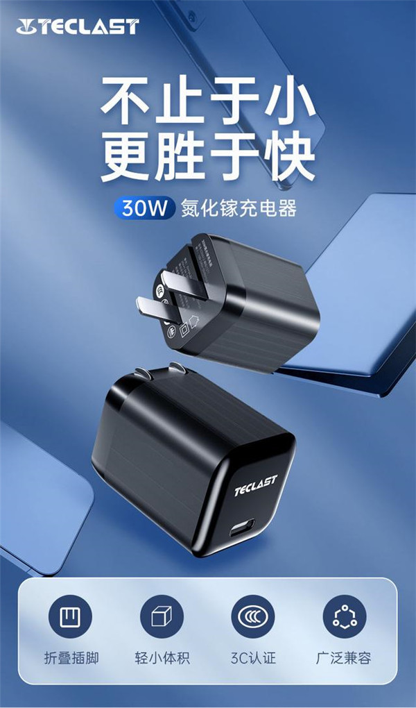 12 月 7 日消息,今天,台电宣布 TECLAST 氮化镓充电器上新,单 USB-C 接口,支持 30W PD 快充,售价 59.9 元。