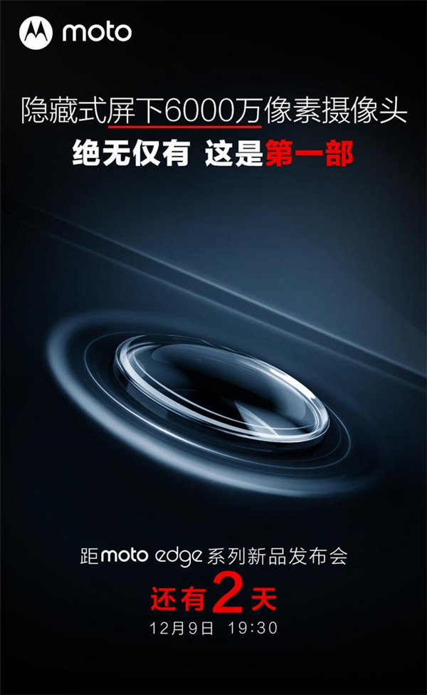 随着发布会的临近,摩托罗拉手机官方今日通过社交媒体继续为新机预热,称 moto edge X30 前置 6000 万像素屏下摄像头,并在官方海报中宣称为“绝无仅有,仅此一部”。