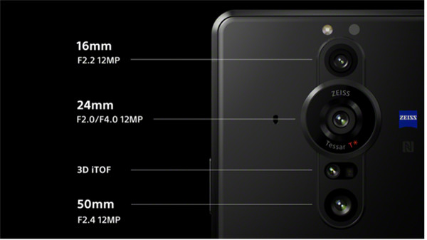 Xperia PRO-I 的三镜头均采用蔡司 T * 抗反射涂层和 3D iToF 传感器。新开发的 24mm 镜头采用蔡司 Tessar Optics T * 提供了高分辨率的图像,实现了更高的对比度和清晰度。Xperia PRO-I 拥有 16mm、24 mm 和 50 mm 镜头,3D iToF 传感器还可实时计算相机与拍摄对象之间的距离。