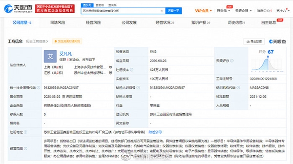 资料显示,苏州晶拓半导体科技有限公司成立于2026年8月,法定代表人为艾凡凡,经营范围包括半导体器件专用设备制造;半导体器件专用设备销售;光伏设备及元器件制造等。