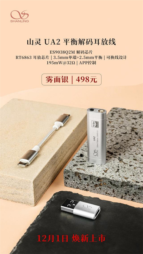 12 月1 日消息,今日山灵为 UA2 解码耳放推出了全新的雾面银版本,颜值相比上一代更高。这款产品零售价 498 元,目前已经开售。