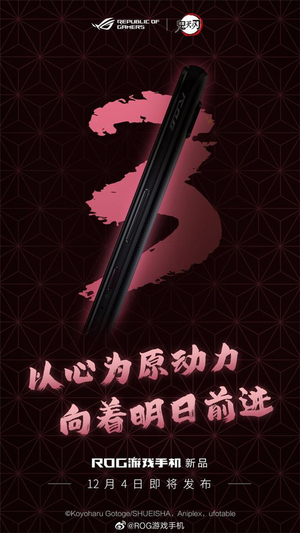 12 月 1 日消息,ROG 游戏手机官方今日宣布,ROG 游戏手机新品发布会定档 12 月 4 日,而且从宣传海报来看还将会与《鬼灭之刃》进行联名,届时将为大家带来惊喜。