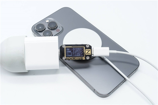 充电头网测试数据显示,使用171固件MagSafe搭配苹果20W PD充电器为iPhone充电时,iPhone 13 Pro Max充电功率17.2W,完全充满耗时2小时40分钟;iPhone 12 Pro Max充电功率18.35W,完全充满耗时3小时30分钟。iPhone 13系列和iPhone 12系列其他几款机型的充电功率均在18W上下波动,电压维持在9V。