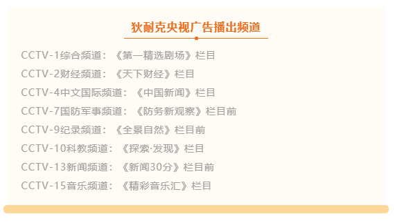 央视选择登陆CCTV的品牌有其严格的审核机制,在经过生产资质、产品品质、检验检测合格报告、市场信誉度、商标合法化、品牌综合实力等层层筛选、严格审查之后,狄耐克实力出圈!