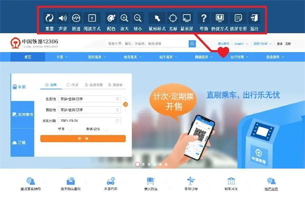 在12306网站方面,支持读屏软件获取网页完整信息;提供无障碍辅助工具,支持放大缩小、调整配色、语音识读等功能;优化了登录验证码,提供滑块验证和短信验证两种形式。