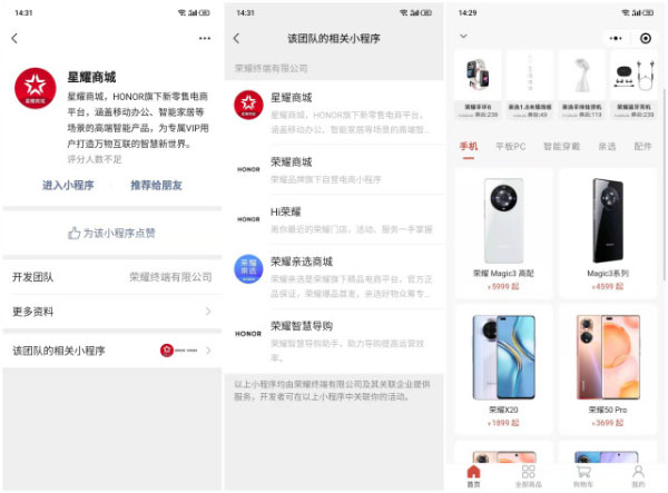 而且和星耀商城相关的小程序都是荣耀相关的,因为本身荣耀就已经有一个自有商城了,完全没必要说再重新搞一个商城来分摊自己的流量,所以搞一个名为星耀的商城出现,其份量还是很大的。