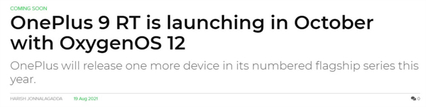 系统方面一加 9RT 还将在海外首发搭载基于 Android 12 的氧 OS 12。