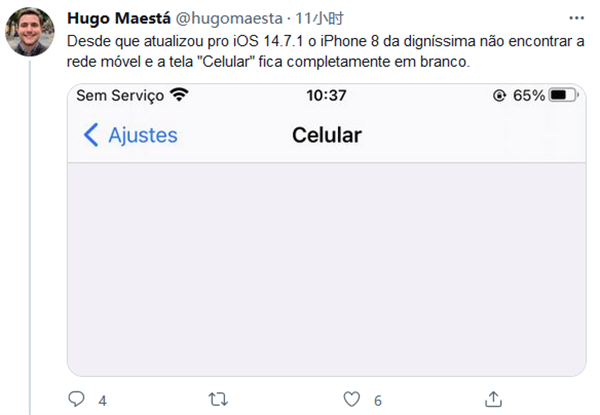 更新到iOS 14.7.1版本后,很多用户抱怨升级后信号经常消失。 这个错误被称为“无服务”运营商覆盖信号错误。 一些用户甚至宣称“蜂窝网络”页面是完全空白的。总结用户反馈的细节,招募的机型包括iPhone 11、iPhone 8、7和6S系列,而苹果尚未回答这个问题。