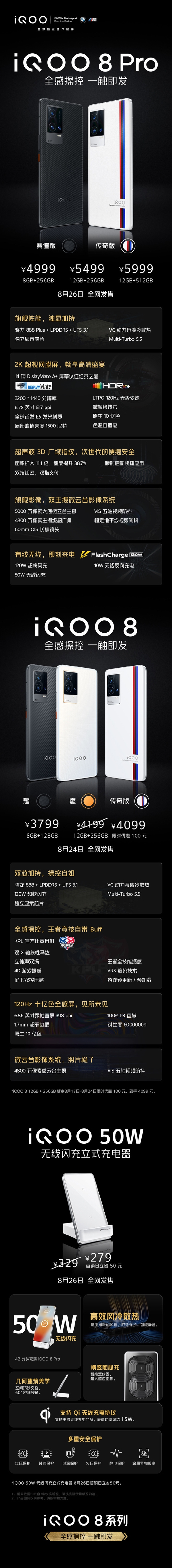8月17日晚iQOO 8系列手机正式发布了,主要是iQOO 8及iQOO 8 Pro两款型号,前者是骁龙888处理器,3799元起,而后者是骁龙888 Plus,同时还有2K OLED屏,50W无线快充及微云台拍照系统,售价4999元起。
