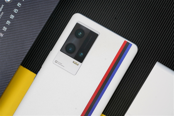 iQOO 8系列这次也分为赛道版及传奇版,前者的后壳改用碳纤维纹理,后者延续了经典的三色纹风格,更有科技感。我们拿到的是传奇版。