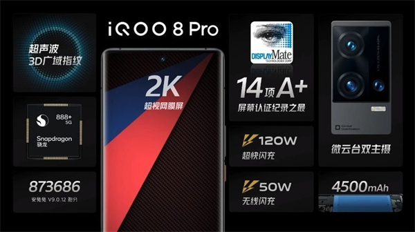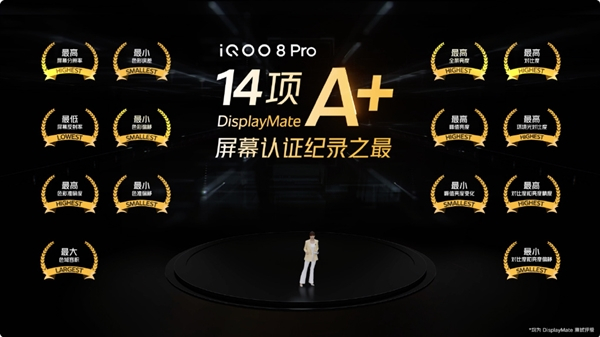 色彩方面,iQOO 8系列中的大杯iQOO 8 Pro是逐台调校,️并获得了屏幕评测专业媒体DisplayMate的14项A+认证。