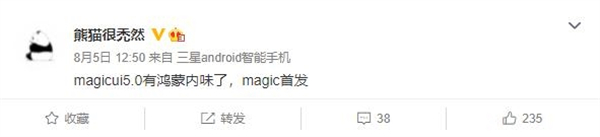 Magic UI 5.0或基于Andorid 11系统开发而来,可以理解安卓系统套上了鸿蒙HarmonyOS的UI,支持大部分鸿蒙HarmonyOS功能,但不支持超级终端功能。